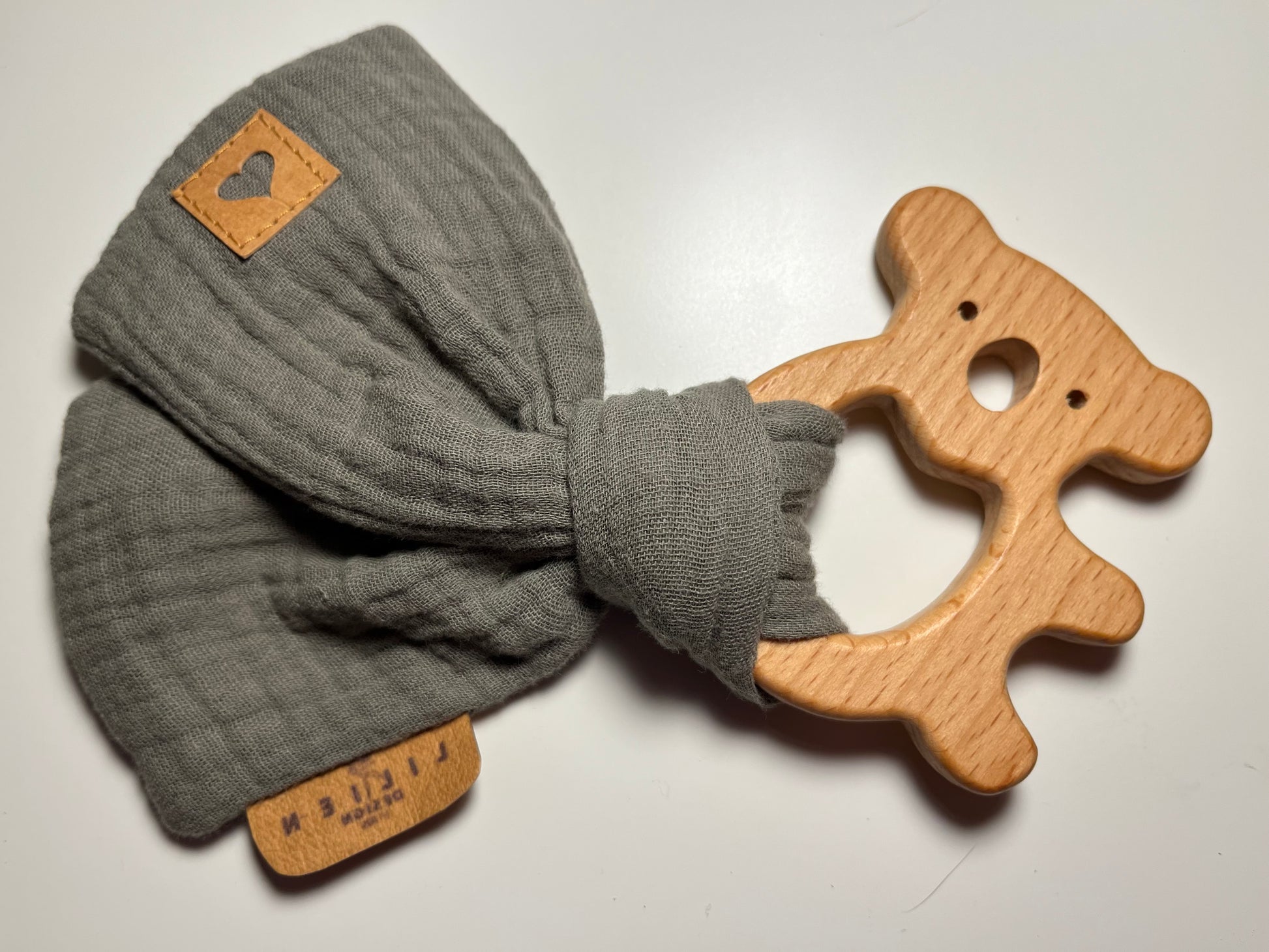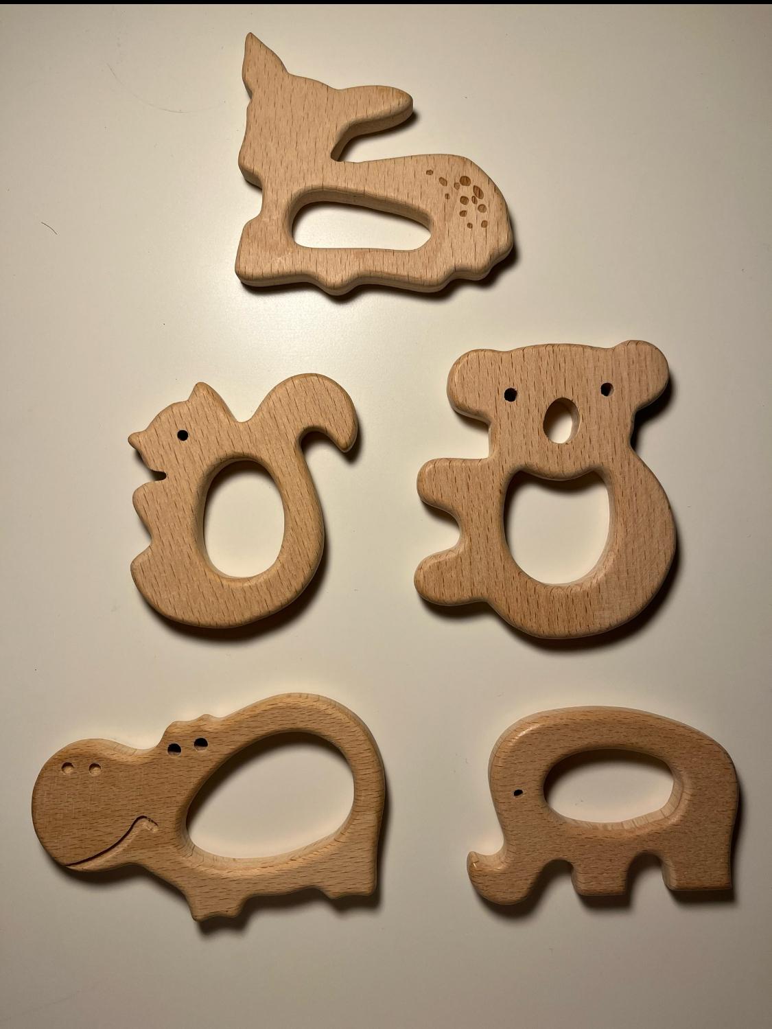 • Beißring aus unbehandeltem Holz – wählbar als Kuh, Ente oder Schwein
