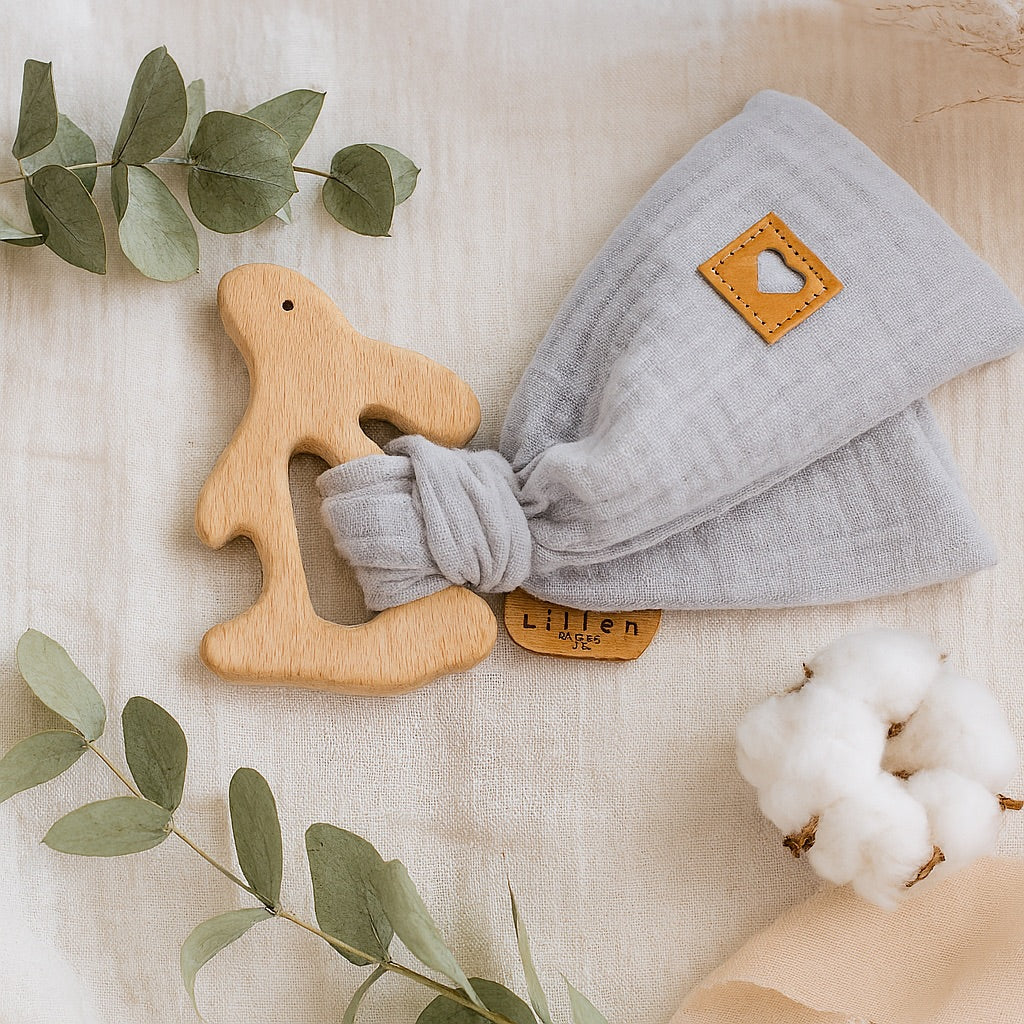 - Beißring aus Buchenholz – Natürlich, robust und ideal zur Linderung beim Zahnen.